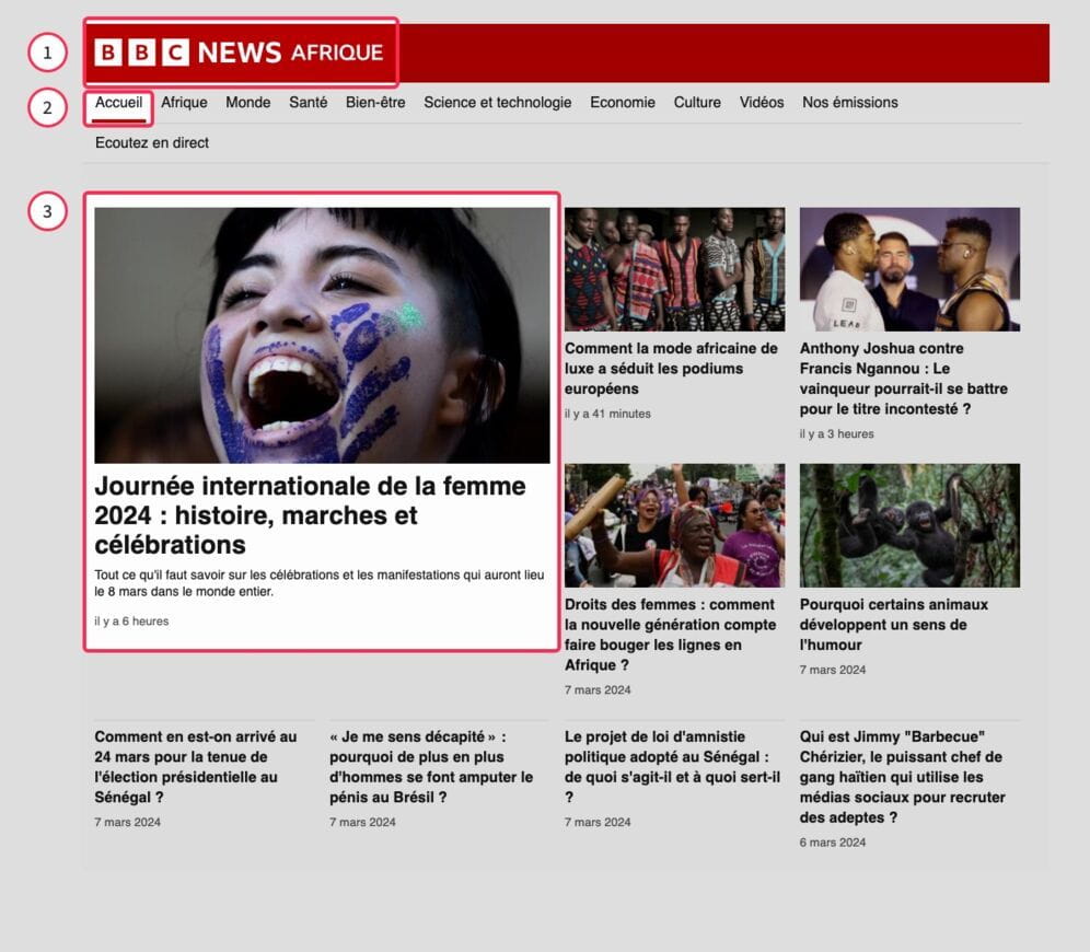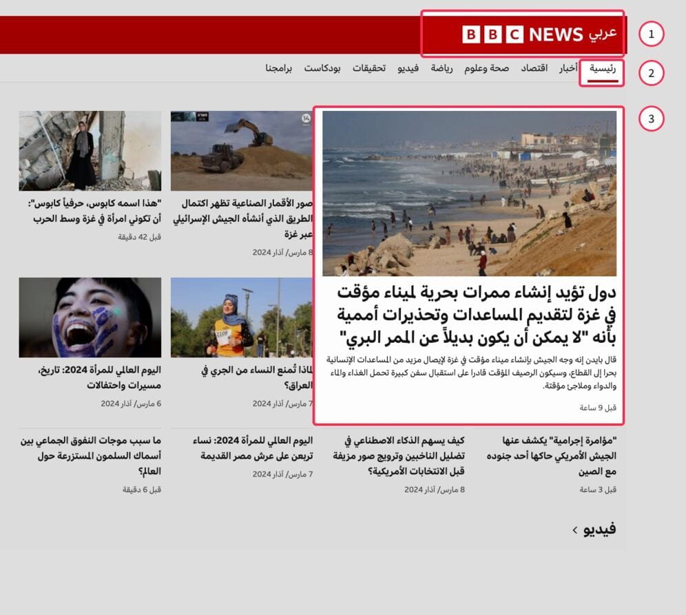Vous pouvez faire le test sur un site internet proposant la langue arabe. Si on accède au site de BBC en français par exemple, on peut repérer :