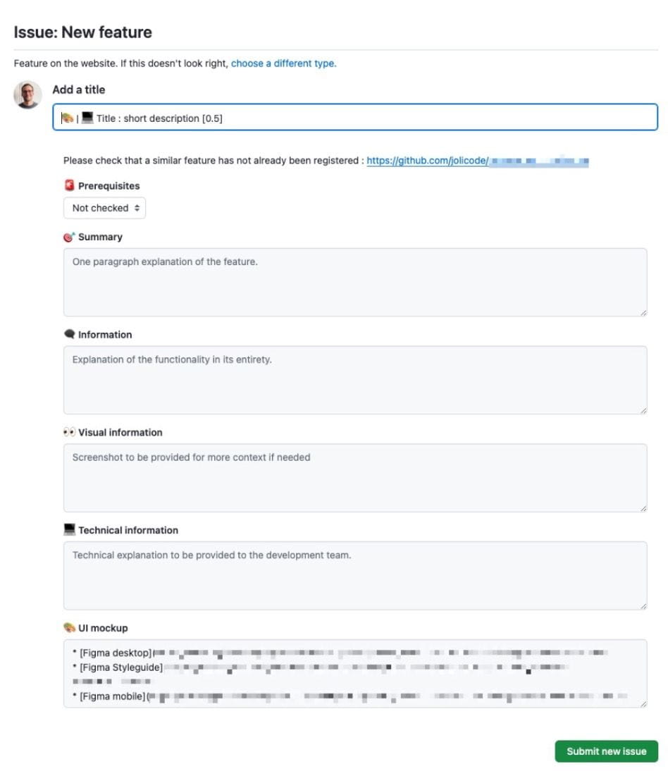 Il pose les bases d’une amélioration constante vers cette excellence opérationnelle, en créant un référentiel qualité organisé par thématique : outillage ; échanges administratifs ; cadrage préliminaire ; travail d’estimation ; accessibilité ; SEO ; performance ; RGPD ; déploiement etc… Maintenant que cet outil est en place à JoliCode et que son utilisation démarre, il est aujourd’hui important d’essayer « d’optimiser » d’autres tâches de notre quotidien, telles que la rédaction de nos tickets (issues) sur GitHub pour les projets clients que nous amorçons. Consacrons donc un peu de temps à clarifier ce processus et à le rendre aussi efficace que possible !